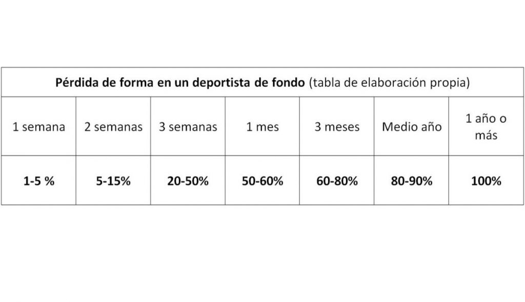 La actividad física realizada al menos 2-3 días por semana aumenta y mantiene el rendimiento deportivo, pero el parón físico continuado merma nuestro nivel, y este descenso de forma física va a depender del periodo de inactividad que se haya tenido.