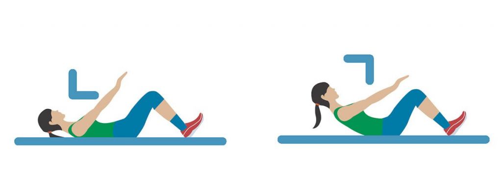 Con las rodillas flexionadas, eleva solo los hombros y no tires de la cabeza.