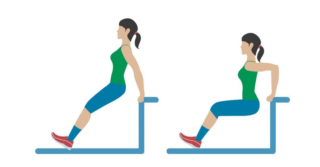 Apóyate sobre un resalte a media altura y repite 30 segundos el gesto de extensión y flexión de brazos.