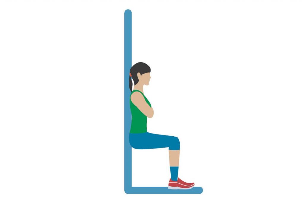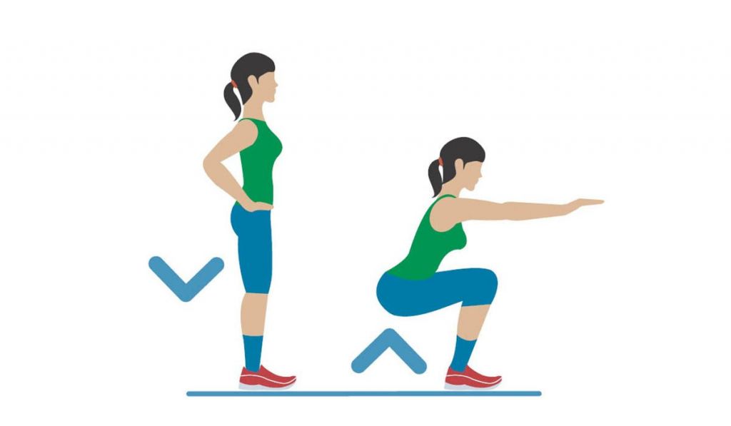 Baja los glúteos hasta la altura de las rodillas llevando los brazos adelante simultáneamente e incorpórate, sin parar, todas las veces que puedas.