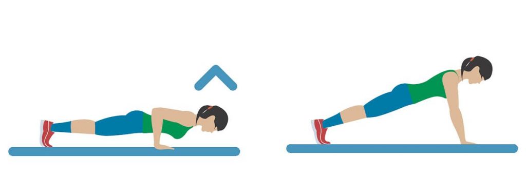 Enlaza un fondo de brazos con una torsión de tronco llevando un brazo arriba cada vez.