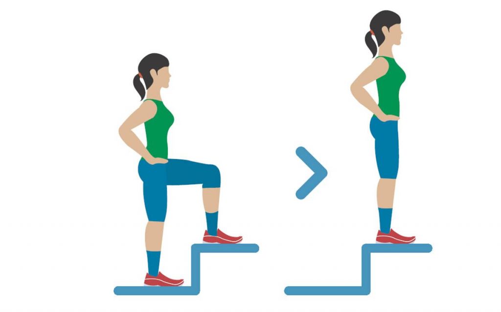 Manos en la cintura y un paso adelante hasta que la cadera quede a la altura de la rodilla, sin que ésta sobrepase la vertical del pie. Medio minuto con cada pierna.